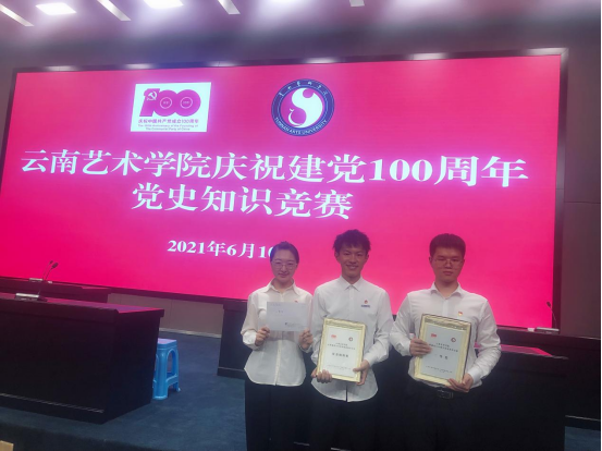伟德国际1946源于英国教师党员代表李超老师、员工党员代表2020级研究生吴浩与2019级本科生张宪壮,经学院组织的党史知识竞赛预选赛脱颖而出,代表学院参加2021年6月10日在公司图书馆报告厅举办的“艺展百年辉煌 传承红色基因”bevictor伟德官网庆祝建党 100 周年党史知识竞赛。