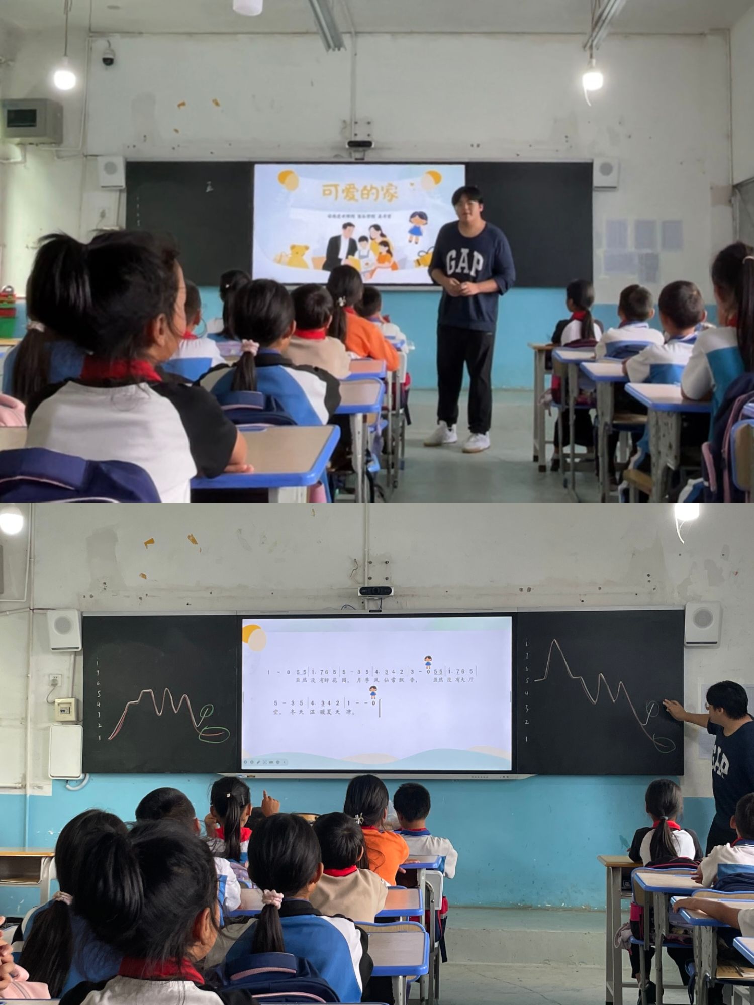 在王子贤同学执教的《可爱的家》一课中,优美的西西里民歌旋律与质朴歌词,成为引导员工从“小家”温情走向“民族大家”团结的感性通道。他创新运用“绘画旋律线”的美育方法,使抽象的旋律化为可视的起伏,让孩子们在歌唱中不仅感受音乐之美,更深化了对歌词情感与家园意象的体验。这堂课成功将音乐课升华为一场深刻的情感教育与文化认同课,生动诠释了美育如何通过感性启发,在孩子们心中筑起家国情怀与民族团结的坚实基础。