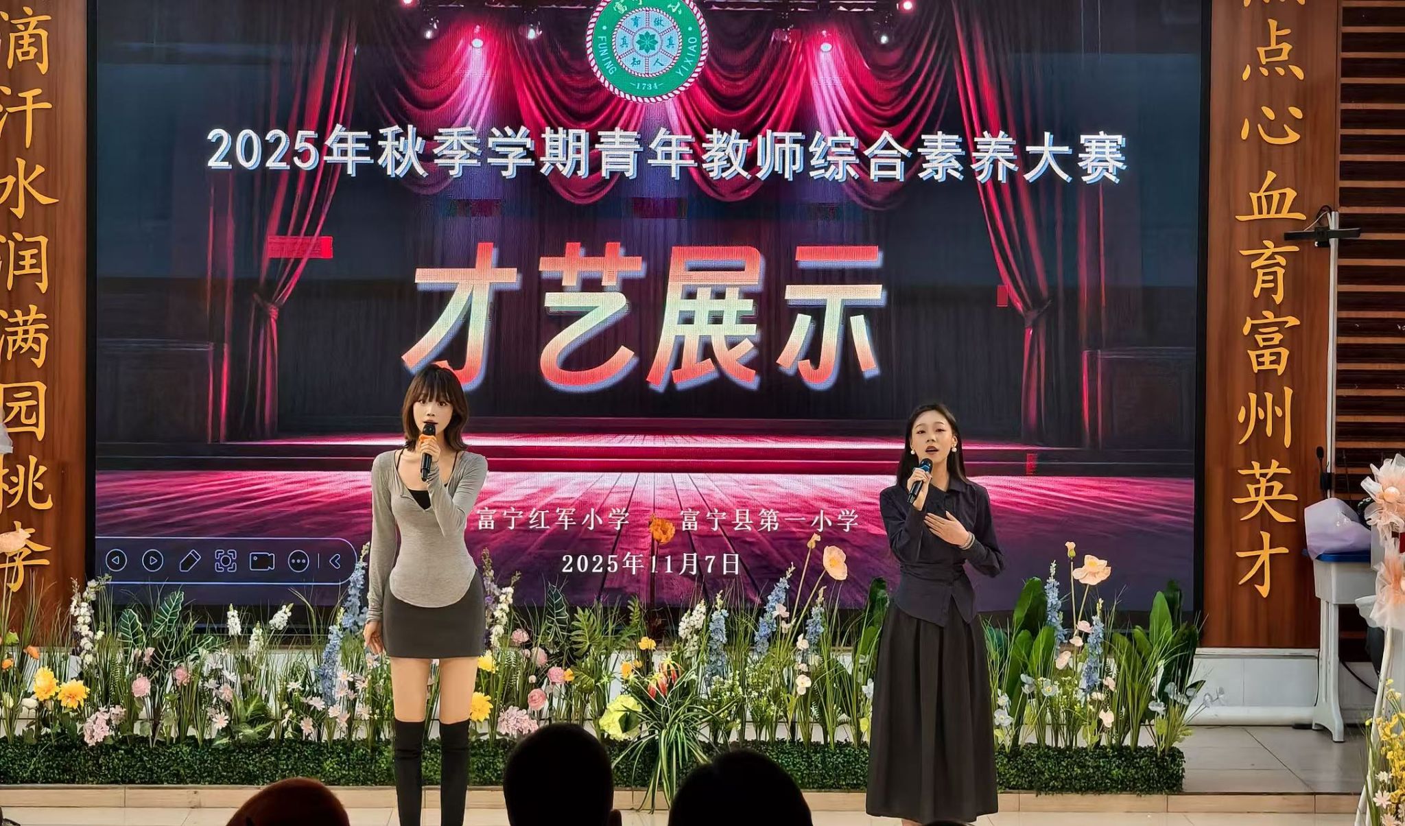 在富宁县各校举办艺术体育节之际,美育浸润团队支教员工也积极参与到各项展演活动中,李垚垚、沈于童同学助演了富宁县第一小学2025年秋季学期青年教师综合素养大赛,专业的演唱表现收获了在校师生的一致好评;带队教师洪旸与李佳溪、李垚垚同学共同赴富宁县思源实验学校助演了第八届文体艺术节综合晚会,两位同学带来了经典民谣歌曲《梨花又开放》,精彩的演唱赢得了在校师生的好评与掌声。