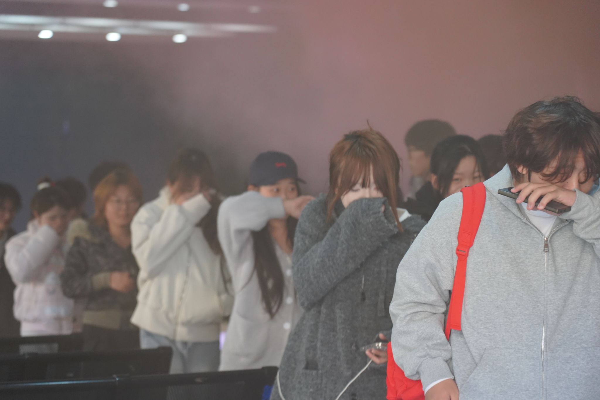 随后,应急疏散演练模拟安康音乐厅观众席发生火情。警报响起,各工作组迅速响应,引导师生按照规范动作沿指定路线安全、有序撤离至学院楼下空地集合点。整个疏散过程紧张有序,未发生拥挤、踩踏情况,达到了预期效果。